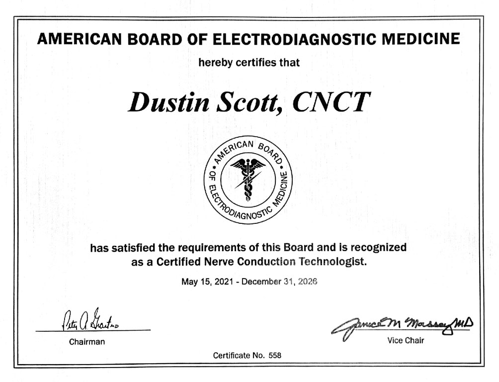- American Board of Electrodiagnostic Medicine - CNCT Certification - Certified Nerve Conduction Technologist MAY 2021 - PRESENT